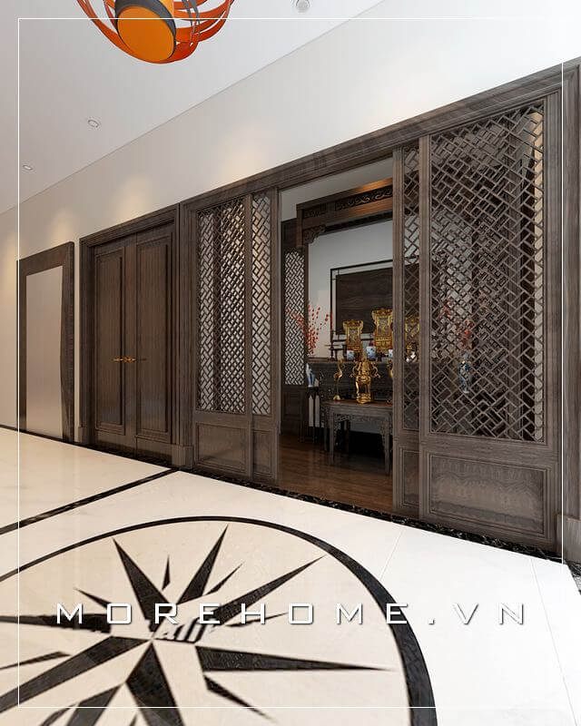 Chiêm ngưỡng mẫu thiết kế nội thất phòng thờ đẹp với nội thất gỗ cao cấp tông màu nâu ghi mang đến không gia thờ cúng tôn nghiêm, trang nhã