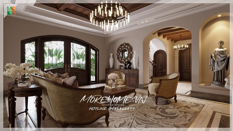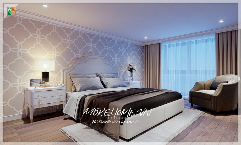 Nội thất phòng ngủ biệt thự cao cấp phong cách tân cổ điển sang trọng, thể hiện đẳng cấp của chủ nhân căn phòng