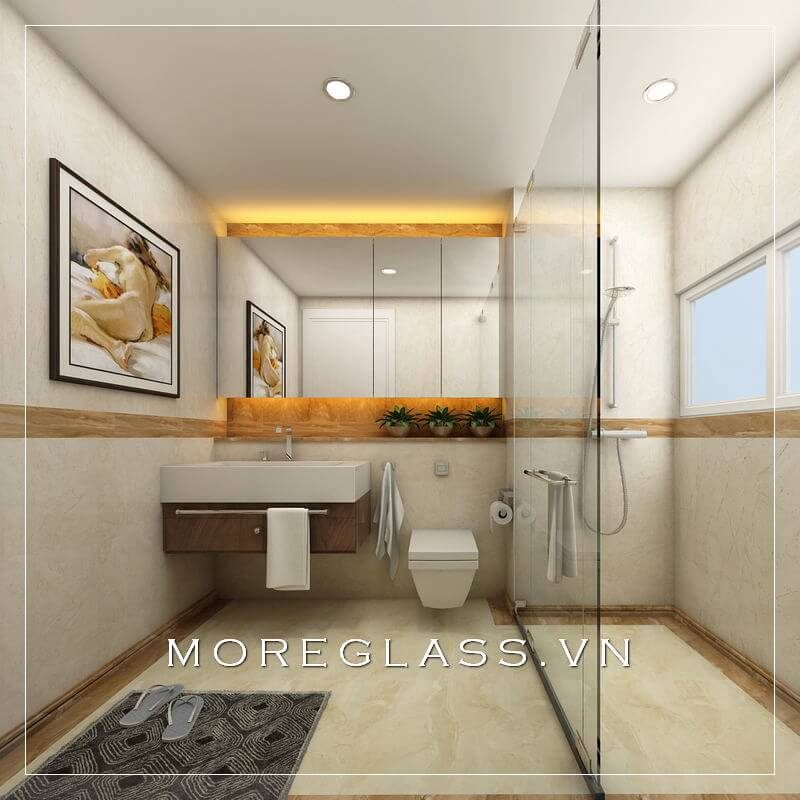 Vách tắm kính 180 độ thông thoáng tối ưu diện tích sử dụng hữu ích đem tới không gian sáng và rộng hơn.