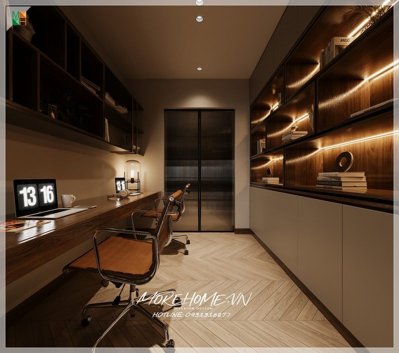 Mẫu thiết kế nội thất chung cư, nhà phố, biệt thự theo phong cách hiện đại cửa ban công thông thoáng có ánh sáng tự nhiên chiếu vào là điều kiện lý tưởng cho không gian phòng học .